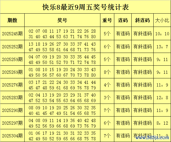 大小比:最近9周五奖号大小总比例为96:84,大号开出较多,最近4周五奖号大小比分辨为10:10、9:11、12:8、10:10,本周五看好大号阐扬活跃,参考大小比13:7。